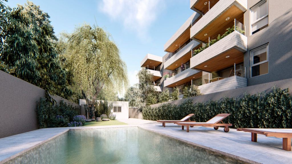 el edificio tendrá espacios de amenities como piscina y salón de usos múltiples con parrilla, espacios verdes, Y zona de cocheras.